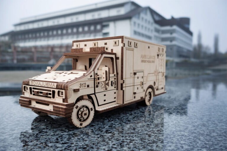 Entdecken Sie die faszinierende Welt mechanischer Modelle mit dem hölzernen 3D-Puzzle Krankenwagen von Eco Wood Art – das ideale Geschenk für Liebhaber des Modellbaus und technischer Herausforderungen! Dieses detailreiche Modell ist nicht nur eine Dekoration, sondern auch ein funktionales mechanisches Teil, das Sie in das Spiel hineinzieht.