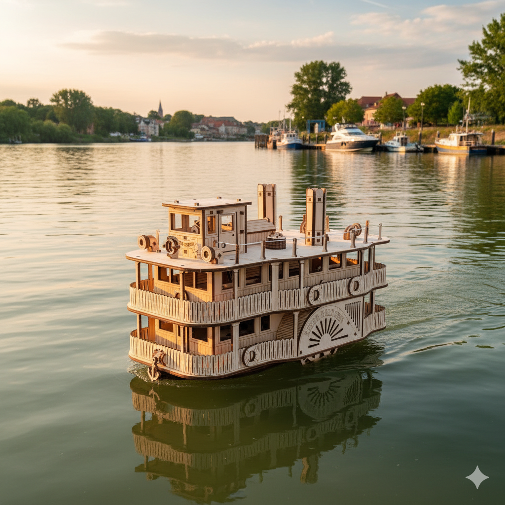 Entdecken Sie den Charme der Vergangenheit mit dem einzigartigen Modell des Raddampfers River Princess , das Sie in die goldene Ära der Dampfschifffahrt entführt. Dieses präzise gefertigte mechanische 3D-Modell aus Holz ist nicht nur ein beeindruckendes Stück für Sammler, sondern auch eine Herausforderung für jeden Modellbau- und Geschichtsliebhaber.