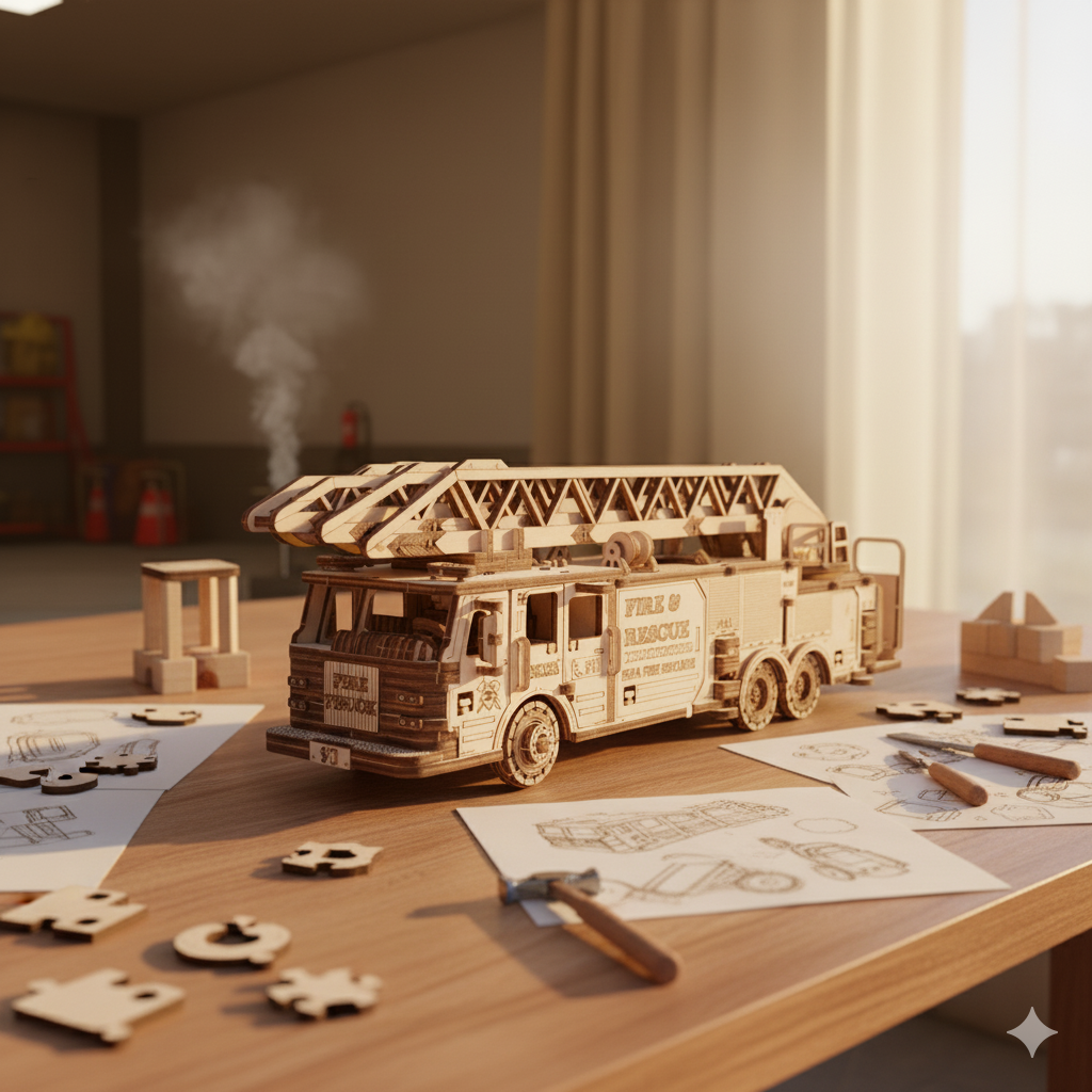 Entdecken Sie die faszinierende Welt der mechanischen Holzmodelle mit dem Feuerwehrauto von Eco Wood Art – ein realistisches 3D-Puzzle, das Technik-, Modellbau- und Design-Enthusiasten lieben werden. Dieses Modell ist nicht nur ein Spielzeug, sondern auch eine Hommage an die Helden, die jeden Tag ihr Leben riskieren, um andere zu retten.